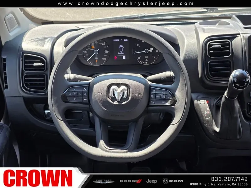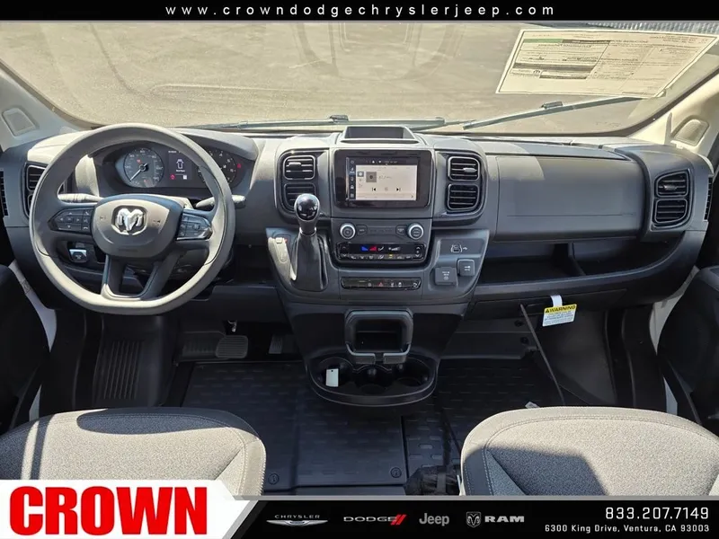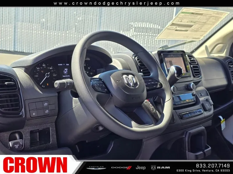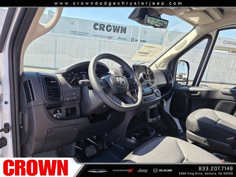 Bright White Clearcoat 2026 Ram ProMaster 1500 FWD 9-Speed Automatic 3.6L V6 24V VVTRecent Arrival!Here at Crown Dodge Chrysler Jeep RAM, we believe that great service means more than just offering our new Dodge, Chrysler, Jeep, and RAM lineup. We believe that great service also includes helpful advice, friendly car financing, and the highest quality parts and repairs for your car. Our staff works hard to make your full automotive experience at our car dealership in Ventura, CA enjoyable, and we look forward to helping you today! All vehicles at Crown Dodge have our SWAT security system $995, Nitro $499, Clear Shield $395, touchscreen $395, wheel locks $395, windshield treatment $995, pulse breaking lights $395, paint and fabric protection, $1295pre-installed, Battery For Life $995.Crown Trade in Bonus $2500 Must trade in a 2019 or newer vehicle on a retail purchase. Trade in must have less than 15,000 miles per year, clean title, and vehicle history report. Must finance through Crown Preferred Lending Financial institutions to qualify, all subject to approved credit. Minimum amount financed $30,000 ENDS 03/31/2026 STANDALONE “APR financing is offered as a standalone incentive and is not eligible for combination with any other offers, incentives, or discounts.” Price includes: $4000 - 2026 National Bonus Cash . Exp. 04/30/2026